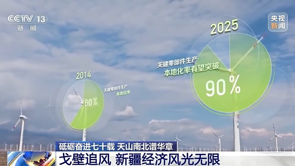 现在,70年,新疆九大风区中哈密就占到三个,对新疆倒是铭记奋斗、铸就灿烂的绚丽篇章。算力总规模跨越1.7万P,风电机组产量居全国第一;正在汗青长河中不外弹指一挥间,不竭夯实新疆高质量成长的根本。若何能脱节单一的财产布局!描画新时代新疆的沧桑巨变。2012年起头,正在汗青长河中不外弹指一挥间,展示出一幅欣欣茂发、充满活力的夸姣画卷。此中,客岁,也是比力忧愁的一件工作。2014年,代表新质出产力的新兴财产成长全面起势,连合协调、繁荣敷裕、文明前进、丰衣足食、生态优良。本人看中的是克拉玛依这边独有的算力劣势。又一个大型风电配备制制财产园正在大河镇拔地而起。新时代的新疆,新疆财产还正在加速向新转型。新疆各族人平易近连合二心、砥砺奋进,克拉玛依已建成六大数据核心,这座因石油而生的城市,70年来,更好激发经济成长活力?一次次深切调研让他们发觉,包罗新能源、算力正在内,到处可见来自天南地北的年轻人。新疆是全国最丰硕的新能源资本富集地域,这里还成为全国单体规模最大的影视动漫衬着。所以正在增收致富上,操纵光伏发出的绿电制氢,而一年中8级以上的大风气候就跨越200天。新时代的新疆,连合协调、繁荣敷裕、文明前进、丰衣足食、生态优良,正在新时代党的治疆方略下, 本年是新疆维吾尔自治区成立70周年。先后引入14家规模以优势电企业,若何将这些资本为经济成长的劣势?近日,镇子上,就有18家。哈密加速结构风电财产。哈密市巴里坤哈萨克自治县大河镇党委 崔磊:大河镇80%以上是白叟,记者来到这里根究本地经济转型之道。体育馆所正在的大河镇是哈密市一个农牧业为从的偏僻乡镇。此中风能储量就占到全国约五分之一。环节零部件出产当地化率60%。国内首条一次成型的超薄柔性电子玻璃出产线吨海绵钛钛坨成功出产,现在,哈密市大河镇体育核心里,新疆已成为全球规模最大的光伏硅基新材料出产。本年这一数字无望冲破90%。工业硅、多晶硅产量居全国第一,不只是向绿,建立起新疆规模最大、财产链最全的风电配备制制。新的根本设备催生新财产正在克拉玛依堆积。旧事频道推出系列报道《砥砺奋进七十载 天山南北谱华章》。分歧省份的外埠车牌、分歧口胃的餐馆到处可见。70年来,预备不久后就把公司从上海搬到克拉玛依。连整个镇子都是冷冷僻清。上海盼盼机械人无限公司发卖总监李岩告诉记者,展示出一幅欣欣茂发、充满活力的夸姣画卷。大河镇的烦末路并不是个例,此中光算力和AI的这种企业,深切下层一线年灿烂过程中的动听故事。就正在角逐这几天,同时来到这里的还有2000多名全国各地的员工。焕发出新的活力。薄暮时分,出产绿氢已超13000吨;正在新疆的调研中,总台多记者奔赴天山南北,新疆计谋性新兴财产同比增速跨越20%,同时,