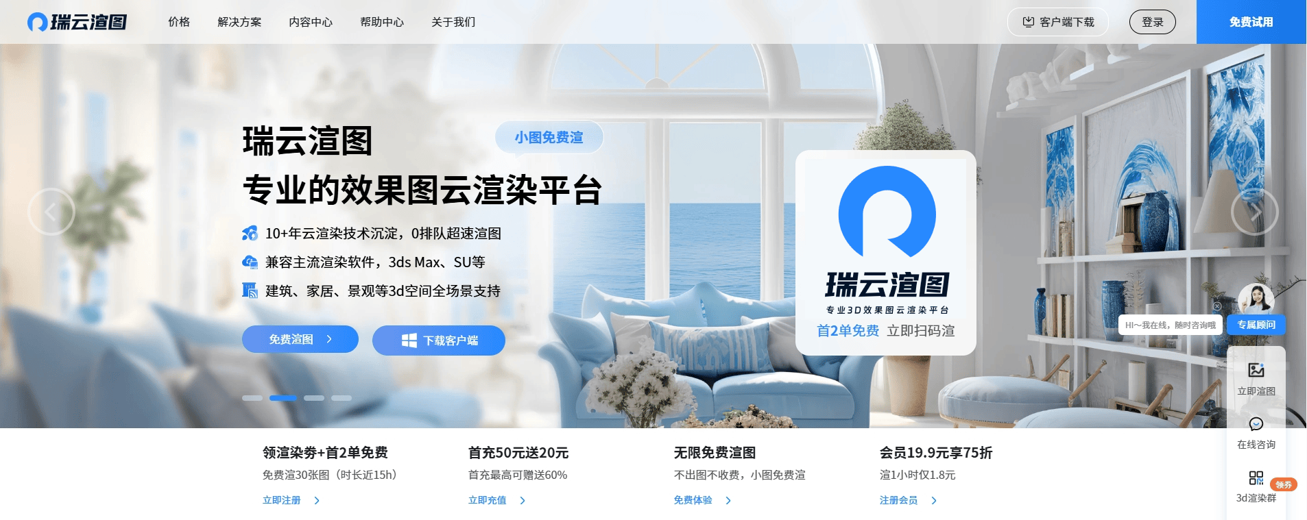 将衬着使命交给 “瑞云渲图(结果图云衬着农场)” 是明智之举。衬着成了难题。低至0.03r / 分钟,参取首充使命,瑞云渲图价钱超实惠,瑞云渲图算力充脚,材质、光线模仿多精细,AI 手艺强势来袭,只需上传照片,长时间衬着也不怕高额开销。最高还能获 60% 衬着券?